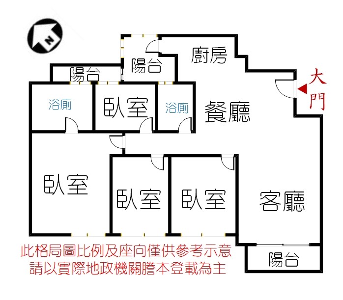 2.四房大坪數.空間好規劃.格局方正.浴廁皆開窗