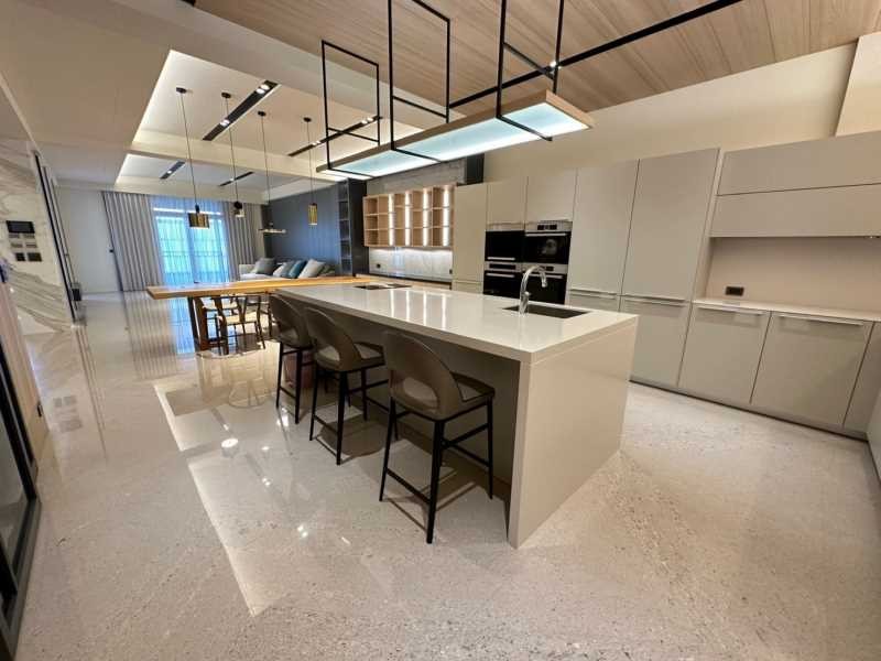 $設置中島料理吧台用豪宅廚房的空間設計